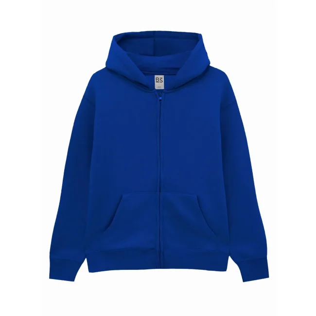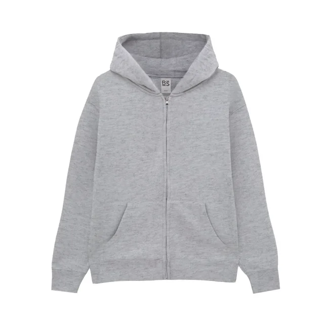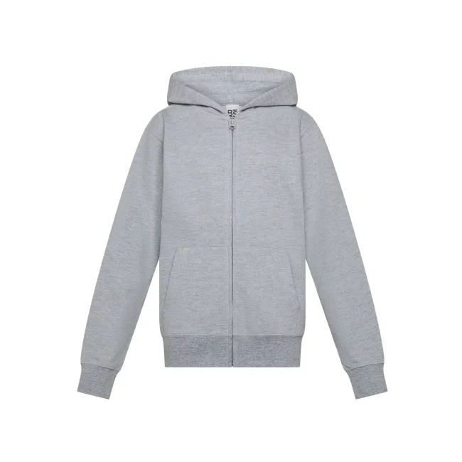 80% cotone, 20% poliestere. Felpa French Terry da bambino con cappuccio e zip, maniche set-in, tasca a marsupio. Orlo inferiore e polsini in costina elasticizzata, struttura con cuciture laterali. Tessuto esterno 100% cotone, che garantisce un'eccellente qualità di stampa. Trattamento peach finish all'esterno. Etichetta strappabile.